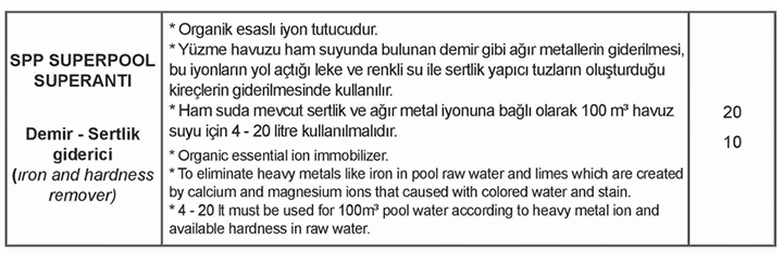Ana Sayfa » Ürünler » Havuz Kimyasalları » Demir Sertlik Giderici » Spp Superpool Superanti Demir Sertlik Giderici